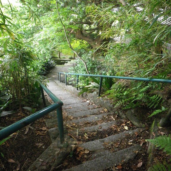 写真上方奥が、’ 南面窟 ’ とともに山中散策路登り口。